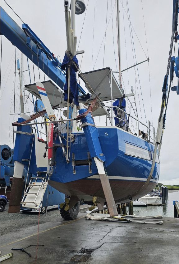 Ya is back in her habitat! Friday morning she went back in the water. What a relief for her and for Peter. It ended up in a launch party on board ‘Ya’ with fellow sailors.