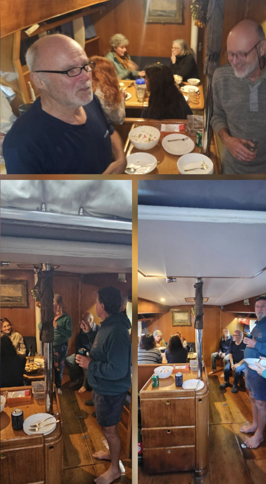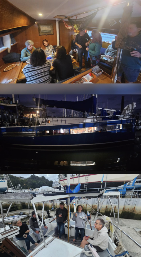 The fellow skippers and wifes and crew endlessly working on their boats in the boatyard, could need a break. So last Saturday we organised a Splash Party on board the Ya. Adriana and her mother (just from Spain) made a great tortilla, Gara made cheese cookies, and big bowls of delicious salad made by Geerhard (fresh crew on board, next blog completely about him).